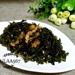 6. Heat oil in a wok, add minced green onions and stir-fry shredded pork.