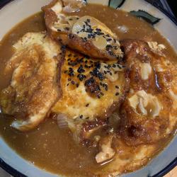 6.Put in the fried poached eggs and cook for 5-10 minutes to taste
