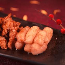 5.Vinegar, dark soy sauce, cooking wine, sugar and starch are mixed into a juice , put in a hot pot, add 1 spoon of fresh soup, fine salt, bring to a boil, add chicken slices, evenly coat with sauce and serve out;