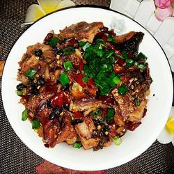 2.After cleaning everything, cut the cured fish into small pieces and cut the dried pepper into sections.Mince the ginger and garlic, chop the green onions, wash the black beans and soak them in warm water until soft.