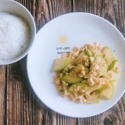 4.Add the zucchini slices, stir-fry for 3 minutes, and season with salt