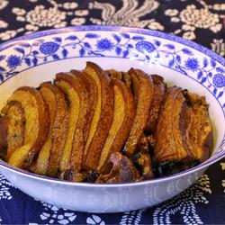 12.Find a bowl of appropriate size, place it on the bowl of steamed pork, and quickly flip it over