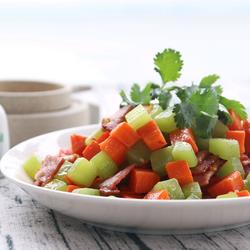 6. Stir-fry shredded ginger in hot oil and add bacon.