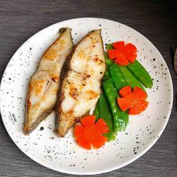 6.Add the fish segments and fry for 2-3 minutes, then turn over.I sprinkled a little black pepper