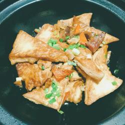 3. Heat the pan until it smokes, turn down the heat to low and pour oil into the pan, then fry the tofu piece by piece over medium-low heat, don't worry about it first Move the tofu, otherwise it will be all rotten.When the tofu is fried until the edges are a little burnt, move it to the pot and wait until the tofu can slide easily in it.Then fry the other side in the same way.Use the same method to fry the other side until both sides are fried.Scoop up the beans when golden.