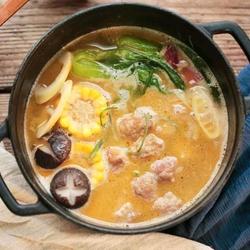 12.Put in the meatballs and enjoy: wait until the soup is slightly When it cools down and the egg yolk bubbles floating on the surface gradually disappear, add the pre-fried meatballs and it’s time to start!