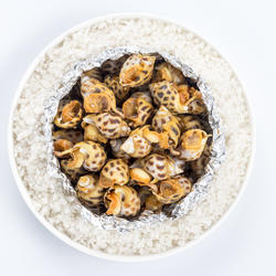 5.Put out the snails and wrap them tightly with tin foil.Place the wrapped snails on the coarse salt in the casserole and cover the pot.Simmer over medium heat for 3 minutes and enjoy