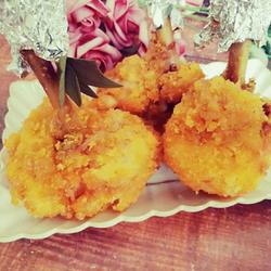 The marinated chicken wings are wrapped in a layer of egg starch bread crumbs