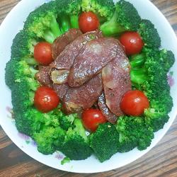 7.It is ready to be served, and finally decorated with small Tomatoes, a healthy and delicious braised sausage and broccoli are completed.