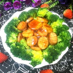 11.The final picture, broccoli is placed around the plate and king oyster mushrooms are placed in the middle.