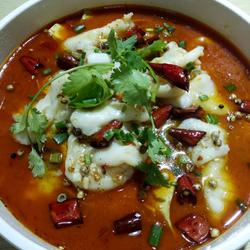 6. Sprinkle some minced ginger and garlic on the fish fillets, clean the pot and add appropriate amount Heat the oil, add dried green peppercorns and dried red peppers, saute until fragrant, pour on top of the fish fillets, garnish with coriander and serve