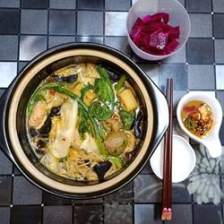 Green vegetables, meatballs, beef rolls, hot pot base ( appropriate amount ) | Fungus, oily bean skin ( appropriate amount ) |
