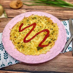 2.Peel and finely chop the potatoes (cut by hand, your knife skills are pretty good).Add the chopped green onions and shredded potatoes into a bowl.Add the eggs and flour
