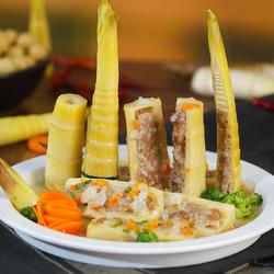 3. Stuff the mixed meat filling into the spring bamboo shoots