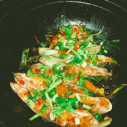 Be sure to bake fish The fire should be medium-low and not high, because the fish without water relies on the juice of the fish and the water of the green onions.When it smokes, pour in the white wine and it will be cooked in 5 minutes.