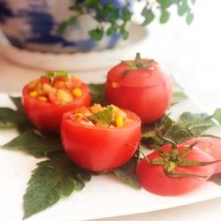 2.Cut the tomatoes and hollow them out with a round spoon;