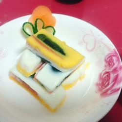 4.Separate egg whites and yolks, stir well, and add a small amount of Discard the salt, chicken essence, and egg white foam, pour it into a container, and steam it in a steamer! Take it out and pour in the egg yolk liquid.Continue to steam in the steamer! After the water boils, it only takes five minutes!
