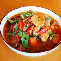 14. Lift the pot, add a little chili, basil, and green onions and arrange it on the plate.The mouth of the plate is rotten and chewy, and the juicy tomato beef brisket is fragrant.It's so delicious!