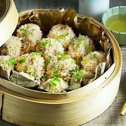 8. Dip the glutinous rice into Place the meatball balls into the steamer.