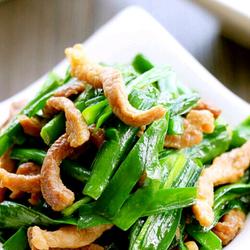 6.Pour in the leeks and stir fry over high heat.The pot will be ready in a few seconds.Don't overcook it, otherwise the flavor of the leeks will be lost