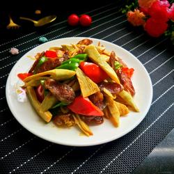 15.The delicious and attractive stir-fried spring bamboo shoots and sausages are ready!
