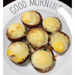 7.Crack quail eggs into each mushroom.
