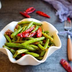 5.Add more oil to the pot, add beans, fry until cooked, remove and set aside