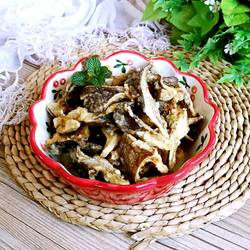 7.Fry over medium heat for about 2 minutes.When the mushrooms turn slightly golden, drain the oil and take them out