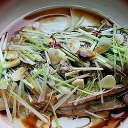 3. Place a small amount of shredded green onion and ginger on the plate.