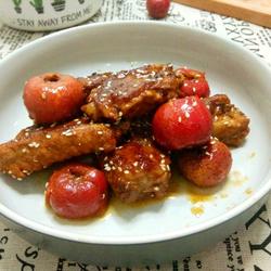 6.When there is not much soup in the pot, add four hawthorns over high heat to absorb the juice.Add a little salt and white sesame seeds before serving.
