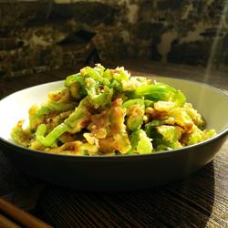 8. The slightly spicy egg noodles and fried green peppers are ready.
