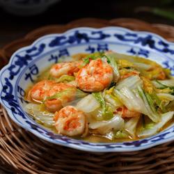 The shrimps are marinated in cooking wine and starch for a while to enhance their freshness and remove the fishy smell, making them more tender and smooth.There is no need to add water during the frying process of this dish, because the cabbage will release a small amount of water, so fry it quickly over high heat to prevent more water from coming out.