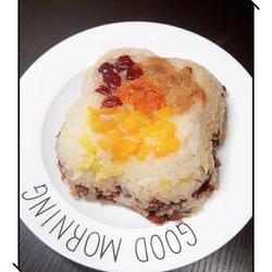 6.Put a circle of red bean honey on the rice, put dried fruits and pineapple in the middle, and put it on the side after taking it out of the pot nice.