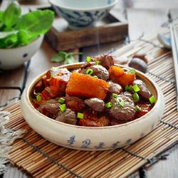 11.Add shiitake mushrooms, light soy sauce, dark soy sauce, onion, ginger, spices, boiling water to cover the ingredients, cover and simmer on low heat for about 1 hour