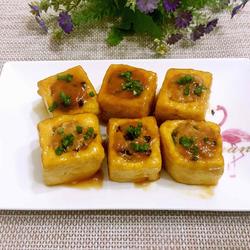 6.Pot Pour an appropriate amount of oil into the pot and heat it up, lower the heat, add the tofu and fry slowly for 2 minutes, turning over.