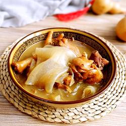9. Pour in hot water to cover the chicken, add salt, onion, ginger and other aniseed ingredients, bring to a boil over high heat, then reduce to medium to low heat, and simmer for 1-2 hours until the chicken is crispy.