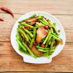 Beans are not easy to taste, so when stir-frying, you can add some salt to taste, but not too much, because the bacon already has a certain saltiness.