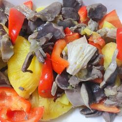 5.Pineapple at the end Sprinkle some salt and stir-fry until the duck gizzards are cooked