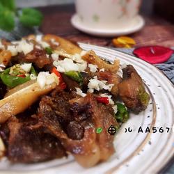5. Heat the oil pan and add the meat and green onions.Crush and stir-fry for a while