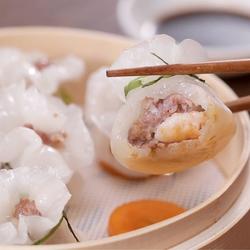 8. Line the steamer with oil paper and put in the crystal lucky bag.Boil water and cook for 15 minutes