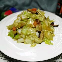 6. Add cabbage and stir-fry until raw, add appropriate amount of mushroom soaking water