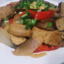 4. Slice red peppers with a diagonal knife, cut garlic into sections with a diagonal knife, and mince green onions.Dried fragrant slices and set aside.