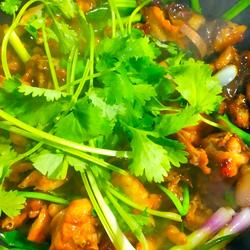 7. Add oyster sauce after the chicken pieces are cooked , scallions, mix well, cover and bake for about 10 seconds, add coriander, and serve.This dish is very sweet and fragrant and is perfect for drinking or eating.