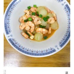 First saute the onions until fragrant, then add the shrimps and an appropriate amount of salt and stir-fry until they turn red.Then add the winter melon balls and cook for about two or three minutes.Turn to low heat and simmer for a while before serving.