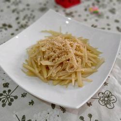 6.Put in hot oil and cold oil and stir-fry shredded potatoes for two minutes