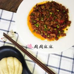 Stir-fried minced meat with garlic and moss, a standard recipe for pancakes