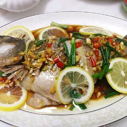 13. Heat an appropriate amount of peanut oil in a wok.When the oil is hot, pour it on the fish.A lemon fish dish is ready!