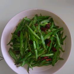 3. Heat an appropriate amount of oil in the wok, add the beans and stir-fry