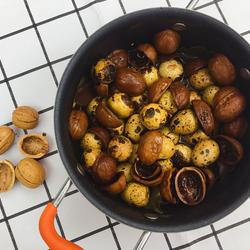 4.Put the walnut shells into the pot and cook until the water boils.Add the bay leaves, star anise and cinnamon and cook for 1 hour (turn to low heat after the water boils)