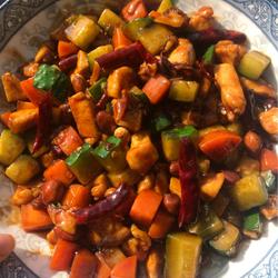10. Then pour in the prepared sauce.Fry evenly until food is cooked through.The sauce will thicken over high heat.Then pour in the peanuts and mix well.